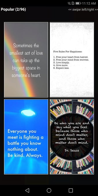 Apa yang membuat aplikasi Famous Quotes & Sayings istimewa adalah kami memiliki berbagai macam gambar, kutipan, dan pepatah yang dapat diurutkan berdasarkan yang paling banyak dilihat, terbaru, dan paling disukai. Dari motivasi hingga persahabatan, cinta, keluarga, dan hewan peliharaan, hingga kebahagiaan, kebijaksanaan, sejarah, dan nasihat hidup, kami memiliki semuanya! Selain itu, kami memiliki koleksi album kutipan dan kolase foto yang luar biasa! Unduh sekarang, jelajahi galeri gratis kami, buat dan bagikan kutipan atau kolase foto, dan nikmati Pesan Inspiratif Harian.